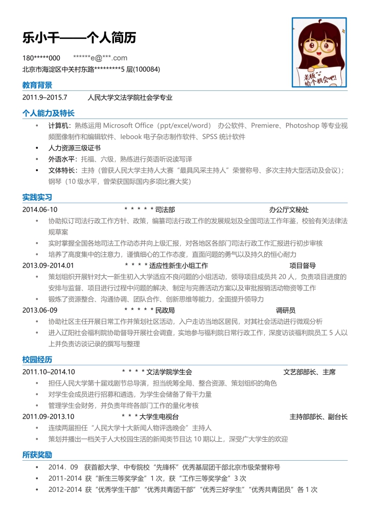乐千宜素材 » 行政管理岗位求职应聘简历模板word可编辑文档下载【Q17】